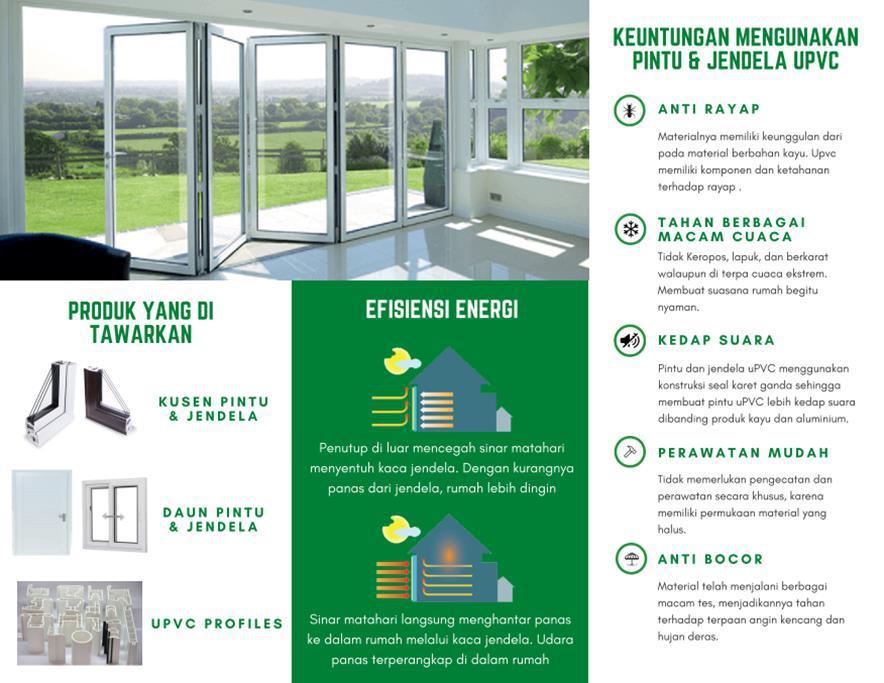 Pintu dan Jendela uPVC sangat dibutuhkan untuk berbagai kebutuhan proyek, kantor, apartemen, hotel, perumahan dan rumah tinggal.