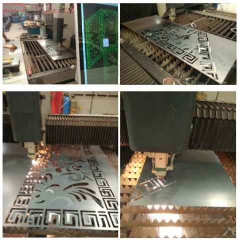 Mesin Laser Cutting kami memotong plat sampai dengan ketebalan (carbon steel 8mm dan stainless steel 6mm). Kami mengerjakannya mulai dari awal sejak mendesain motif, membuat shop drawing dan memotong motif ornamen.
